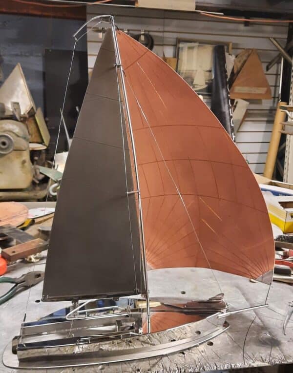 This 1720 Class Model was handmade in Stainless Steel & Copper sailing with her gennaker up.