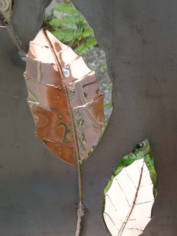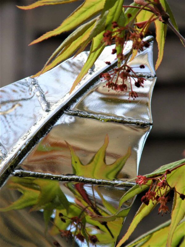 The Stainless Steel leaves were designed to flex in the breeze and will reflect shapes and colours surrounding them in the garden.