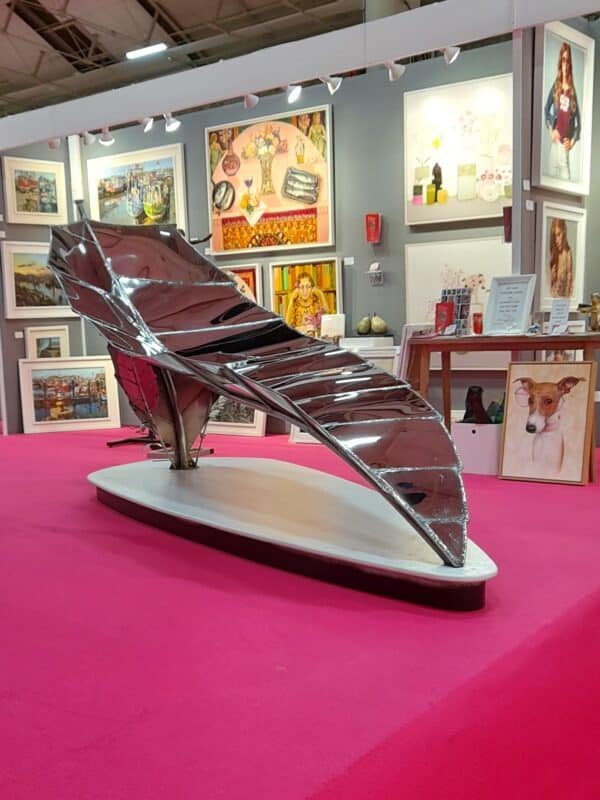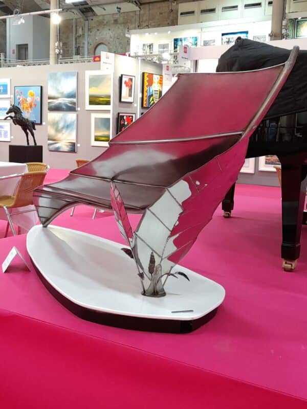 ‘Releaf’ is a striking Stainless Steel Sculpture, inspired by the elegant form of a chaise longue, blending art with function.